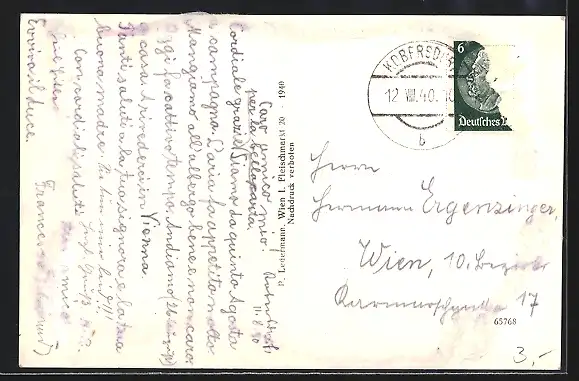 alte Ansichtskarte, gelaufen 1940, Briefmarke entfernt, rückseitig Klebe- und Papierreste, guter Zustand