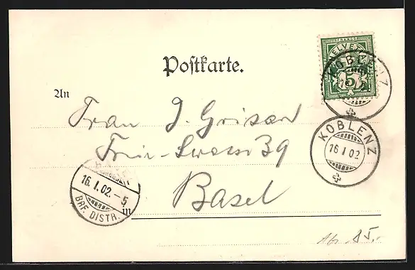 alte Ansichtskarte, gelaufen 1902, guter Zustand