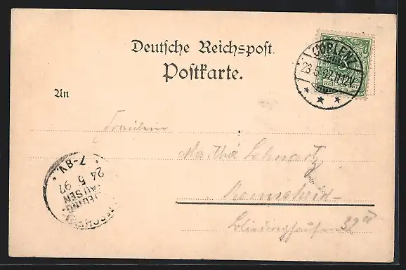 alte Ansichtskarte, gelaufen 1897, Eckknick re. unten, Stempelspur, guter Zustand