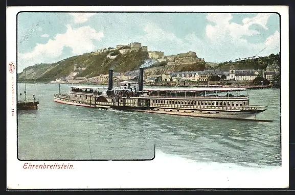 AK Koblenz, Festung Ehrenbreitstein, Dampfer auf dem Rhein