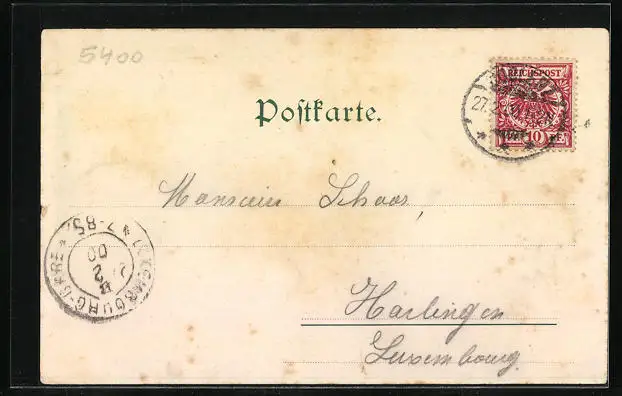 alte Ansichtskarte, gelaufen 1900, Einriss rechts, guter Zustand