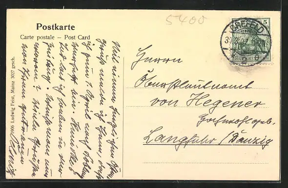 alte Ansichtskarte, gelaufen 1907, Eckknick re. unten, guter Zustand