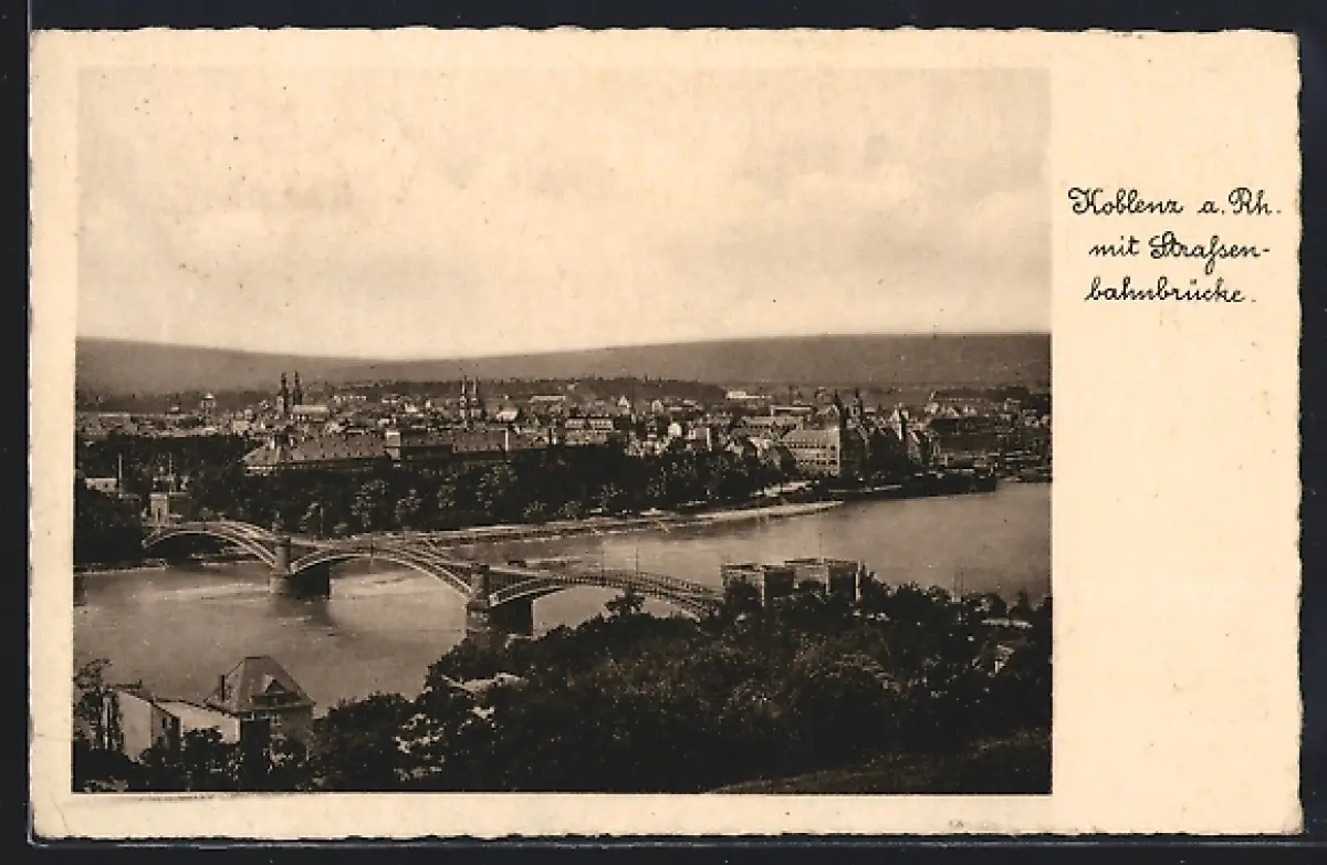 AK Koblenz a. RH., Ort mit Strassenbahnbrücke