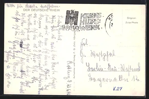alte Ansichtskarte, gelaufen 1942, Briefmarke entfernt, guter Zustand