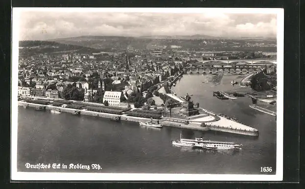 AK Koblenz a. Rh., Deutsches Eck mit Dampfern