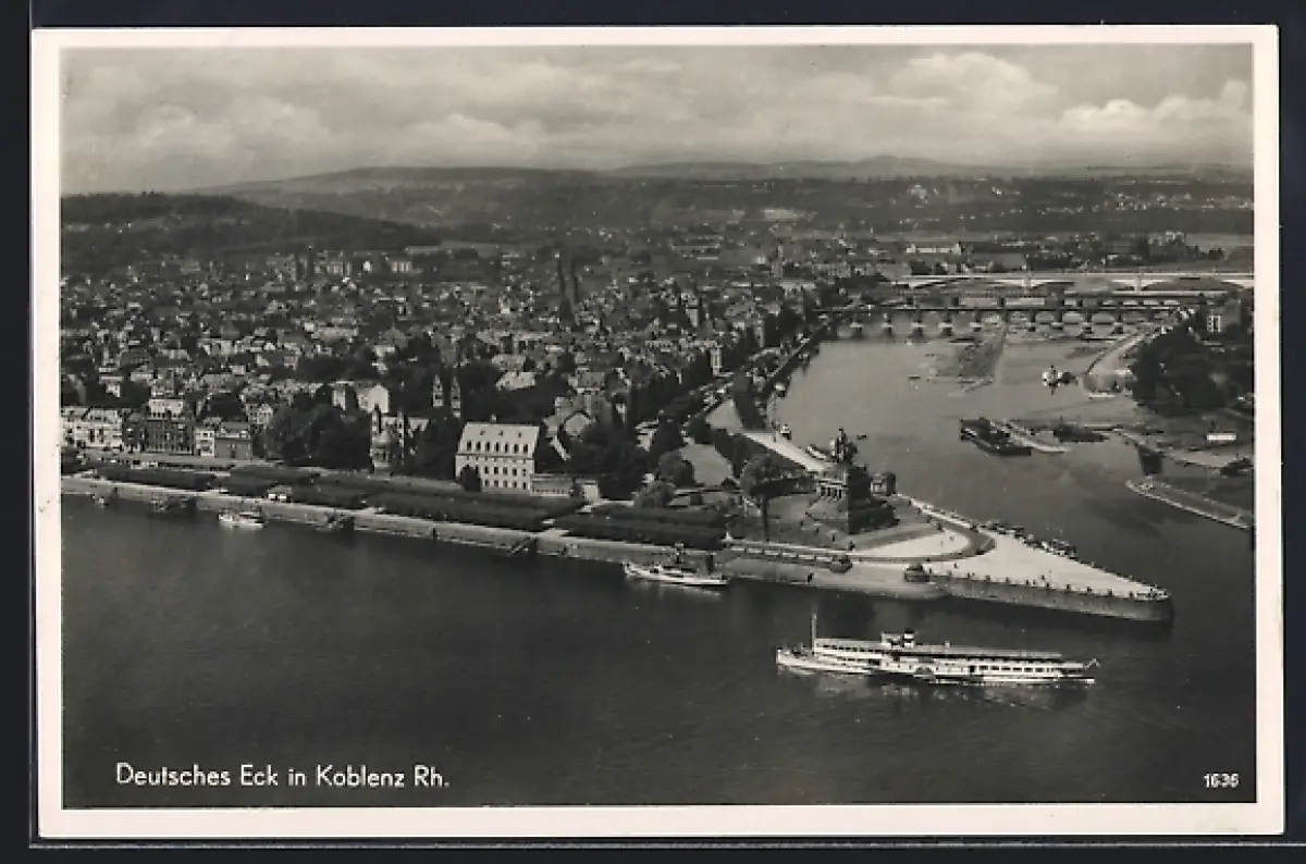 AK Koblenz a. Rh., Deutsches Eck mit Dampfern