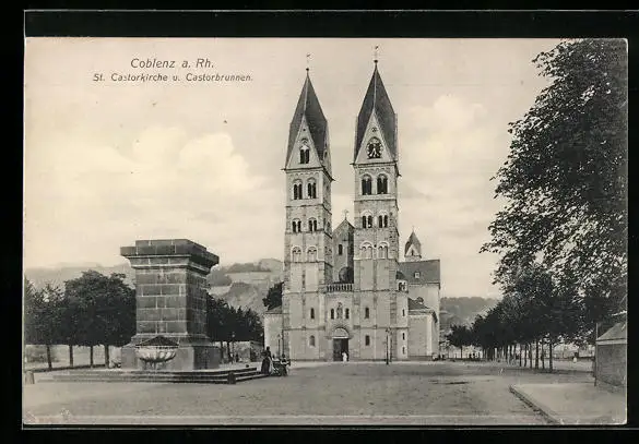 AK Koblenz a. Rh., St. Castorkirche und Castorbrunnen