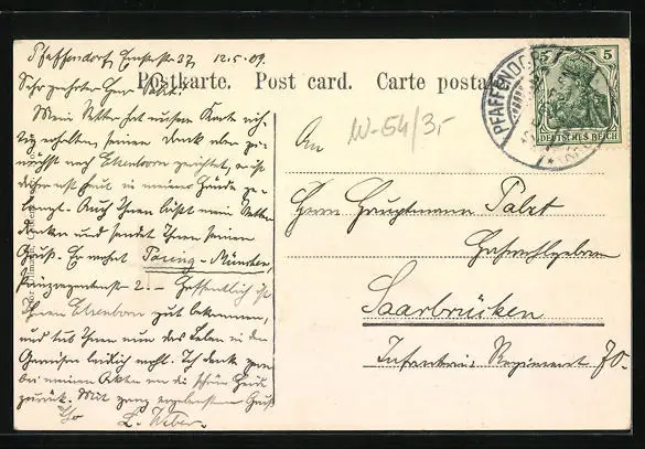 alte Ansichtskarte, gelaufen 1909, guter Zustand