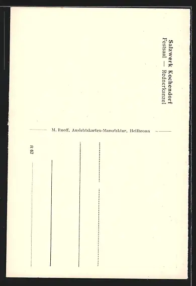 AK Kochendorf / Friedrichshall, Festsaal-Rednerkanzel im Salzwerk