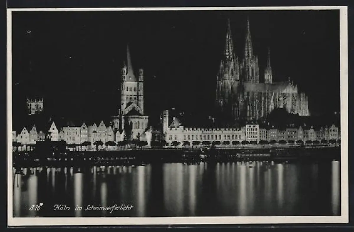 AK Köln, Altstadt und Dom im Scheinwerferlicht