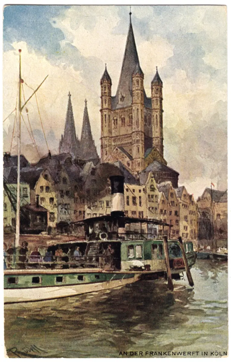Ansichtskarte Köln An der Frankenwerft, Am Frankenwerft Erhaltung I-II ungelaufen, um 1920 Verlag: Hoursch & Bechstedt in Köln am Rhein Reihe: Neue Kölner Künstlerkarten Im Inland erfolgt die Zusendung versandkostenfrei Auslandsversand erfolgt über