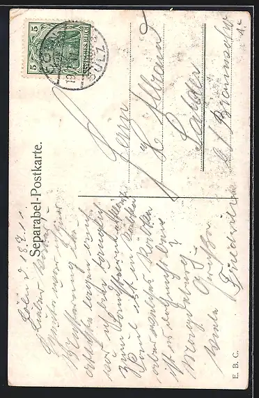 gelaufen 1911, Eckknicke re. oben, guter Zustand