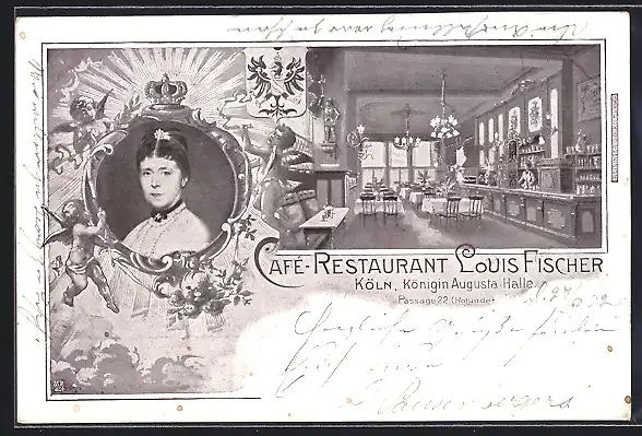 AK Köln, Cafe-Restaurant Louis Fischer, Innenansicht & Porträt