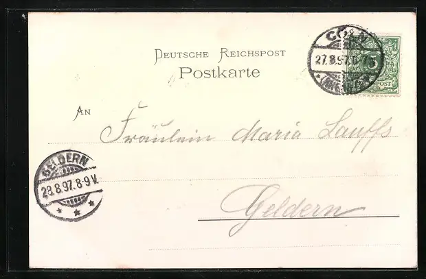 alte Ansichtskarte, gelaufen 1897, Stempelspur, guter Zustand