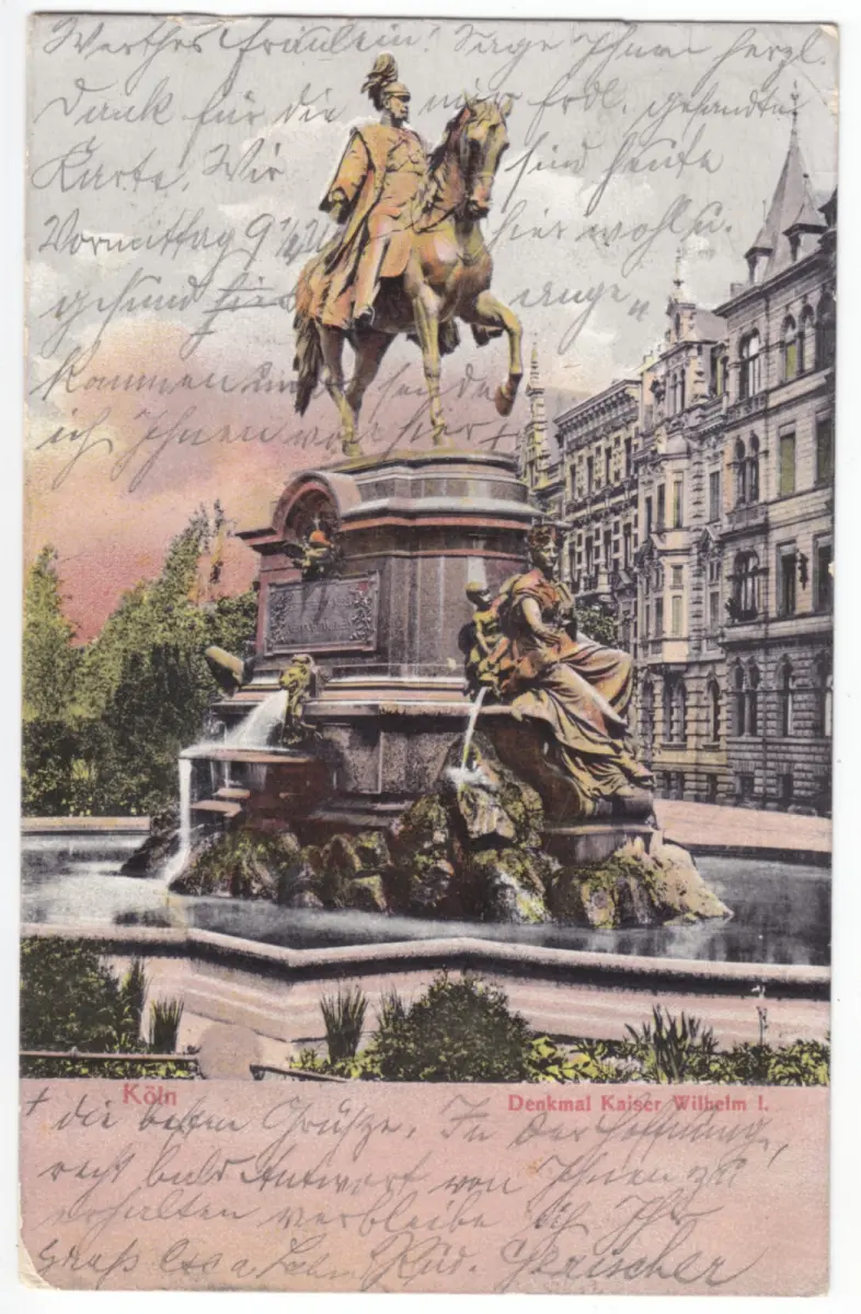 Ansichtskarte Köln Denkmal Kaiser Wilhelm I. Erhaltung I-II postalisch gelaufen, gestempelt: Cöln (Rhein) 1, 8.6.03 Im Inland erfolgt die Zusendung versandkostenfrei Auslandsversand erfolgt über