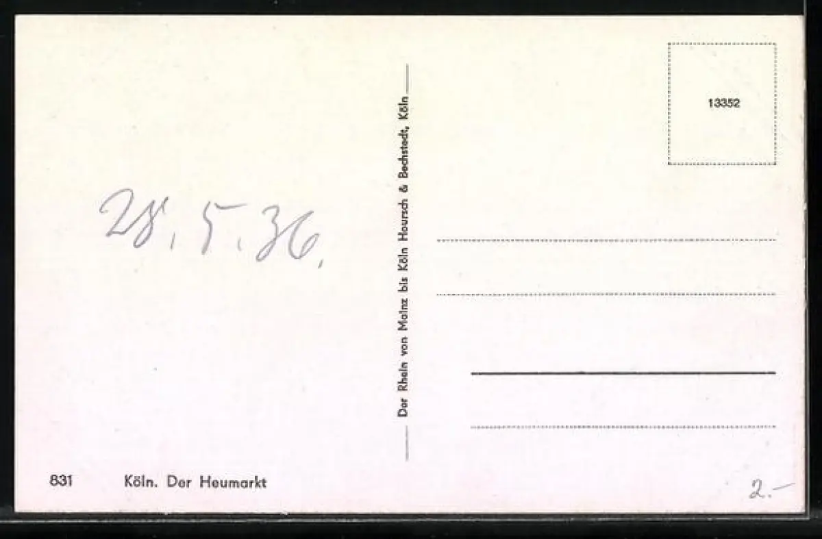 Personenbezogene Daten auf der Rückseite der Karte wurden durch blauen Textmarker unkenntlich gemacht. Die blauen Stellen sind auf die Vorderseite durchgeweicht und wirken sich negativ auf das Postkartenfoto aus