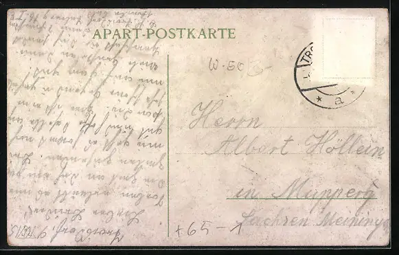 alte Ansichtskarte, gelaufen, Briefmarke entfernt, guter Zustand