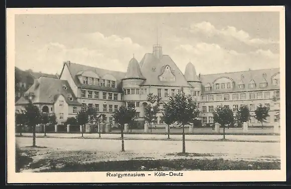 AK Köln-Deutz, Realgymnasium mit Strassenpartie