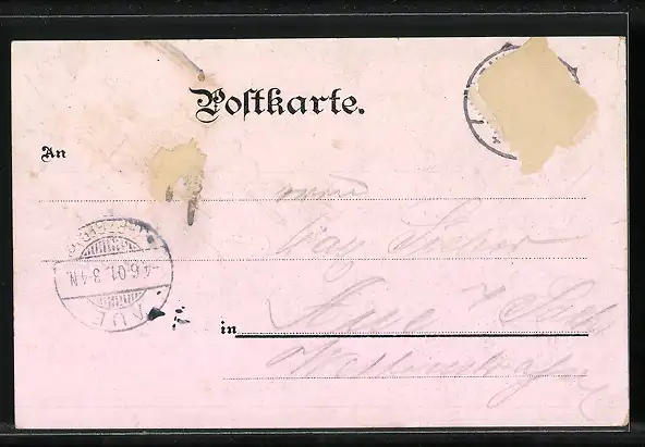 alte Ansichtskarte, gelaufen 1901, Briefmarke entfernt, rückseitig Oberflächenschaden, Eckknicke li., guter Zustand