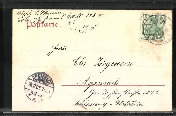 alte Ansichtskarte, gelaufen 1903, Stempelspur, guter Zustand
