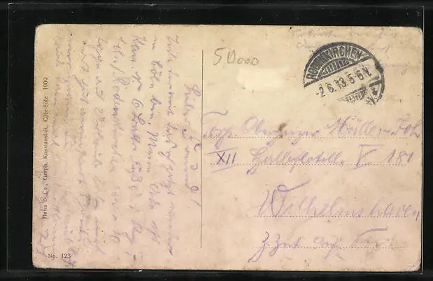 alte Ansichtskarte, gelaufen 1913 als Feldpost, Ecken bestoßen, Stempelspur, guter Zustand