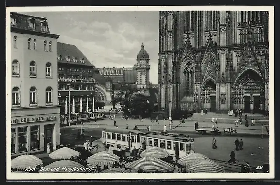 AK Köln, Dom und Hauptbahnhof mit Strassenbahnen