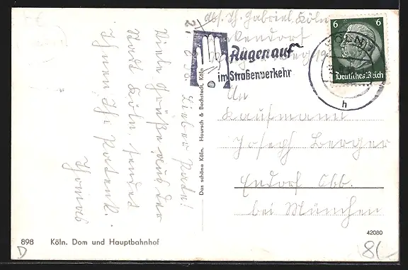 gelaufen 1938, Eckknicke links u. rechts unten, guter Zustand