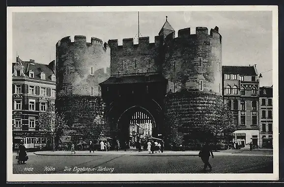 AK Köln, Eigelstein-Torburg mit Strassenbahn