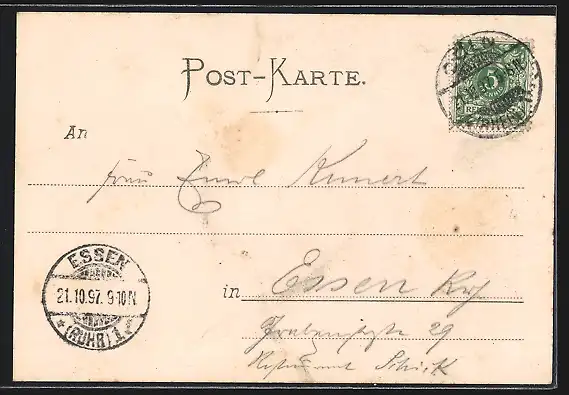 alte Ansichtskarte, gelaufen 1897, guter Zustand