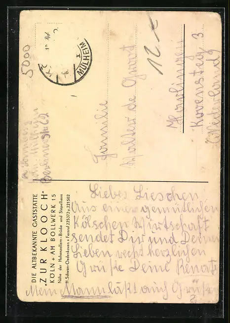 AK Köln, Gasthaus zur Klooch, Am Bollwerk 15