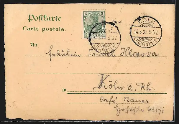 alte Ansichtskarte, gelaufen 1902, guter Zustand