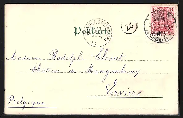 alte Ansichtskarte, gelaufen 1901, guter Zustand