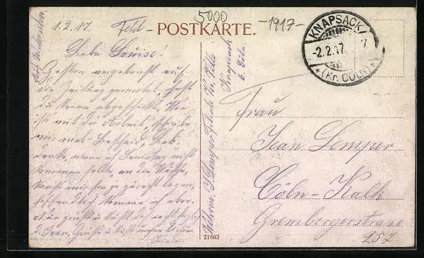gelaufen 1917, Bugspur oben mittig, guter Zustand