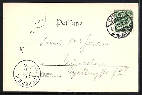 alte Ansichtskarte, gelaufen 1898, Stempelspur, guter Zustand