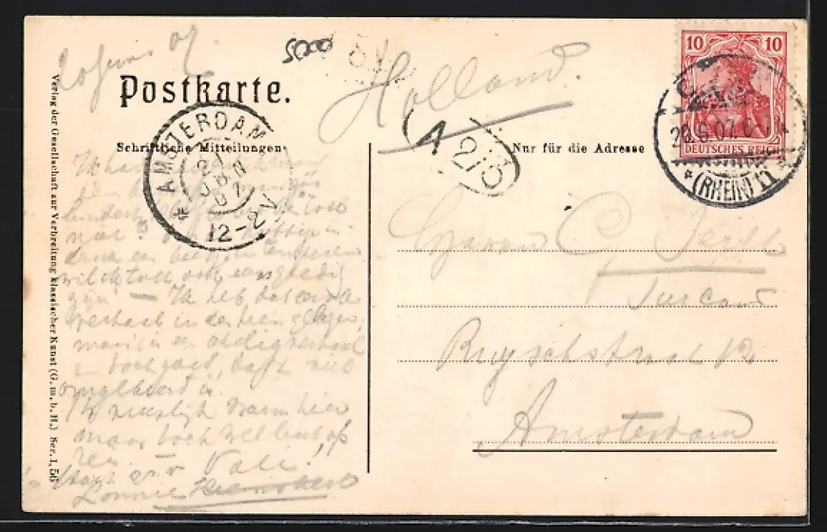 alte Ansichtskarte, gelaufen 1907, Stempelspur, guter Zustand