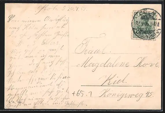 alte Ansichtskarte, gelaufen 1909, Stempelspur, guter Zustand