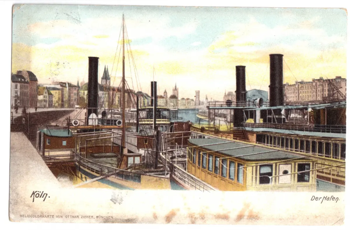 Ansichtskarte Köln Im Hafen Erhaltung II, Randverfärbungen postalisch gelaufen, gestempelt: Mülheim (Rhein), 1.1.14 Karte vor 1905 Verlag: Ottmar Zieher, München Im Inland erfolgt die Zusendung versandkostenfrei Auslandsversand erfolgt über