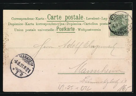 alte Ansichtskarte, gelaufen 1901, guter Zustand