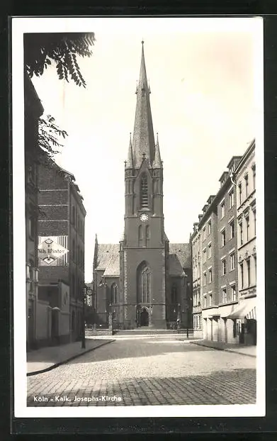 AK Köln-Kalk, Josephskirchstrasse mit Spirituosengeschäft und Josephs-Kirche