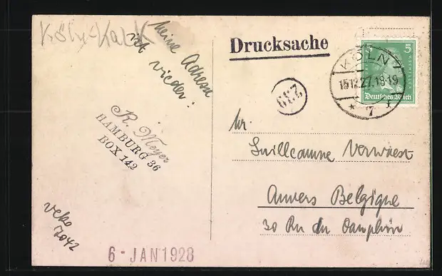 gelaufen 1927, Eckknick re. oben, guter Zustand