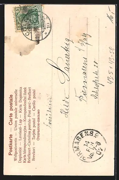 alte Ansichtskarte, gelaufen 1907, guter Zustand
