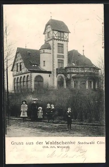AK Köln-Lindenthal, Kinder vor dem Gasthaus Waldschenke im Stadtwald