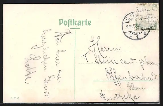 alte Ansichtskarte, gelaufen, Briefmarke entfernt, rückseitig Oberflächenschaden, guter Zustand