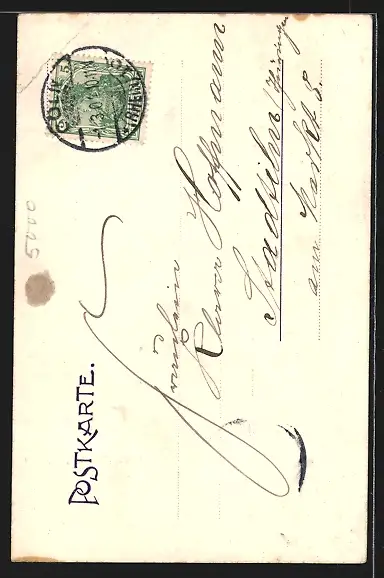 alte Ansichtskarte, gelaufen 1901, Eckknicke re. oben, minimaler Einriss re. oben, guter Zustand