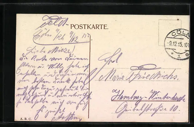 alte Ansichtskarte, gelaufen als Feldpost 1915, guter Zustand