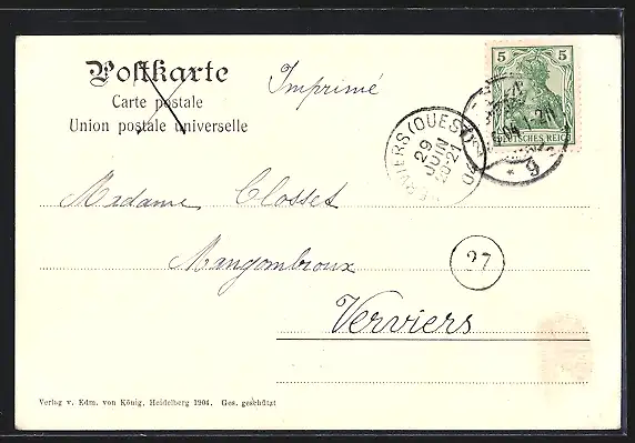 alte Ansichtskarte, gelaufen 1904, guter Zustand