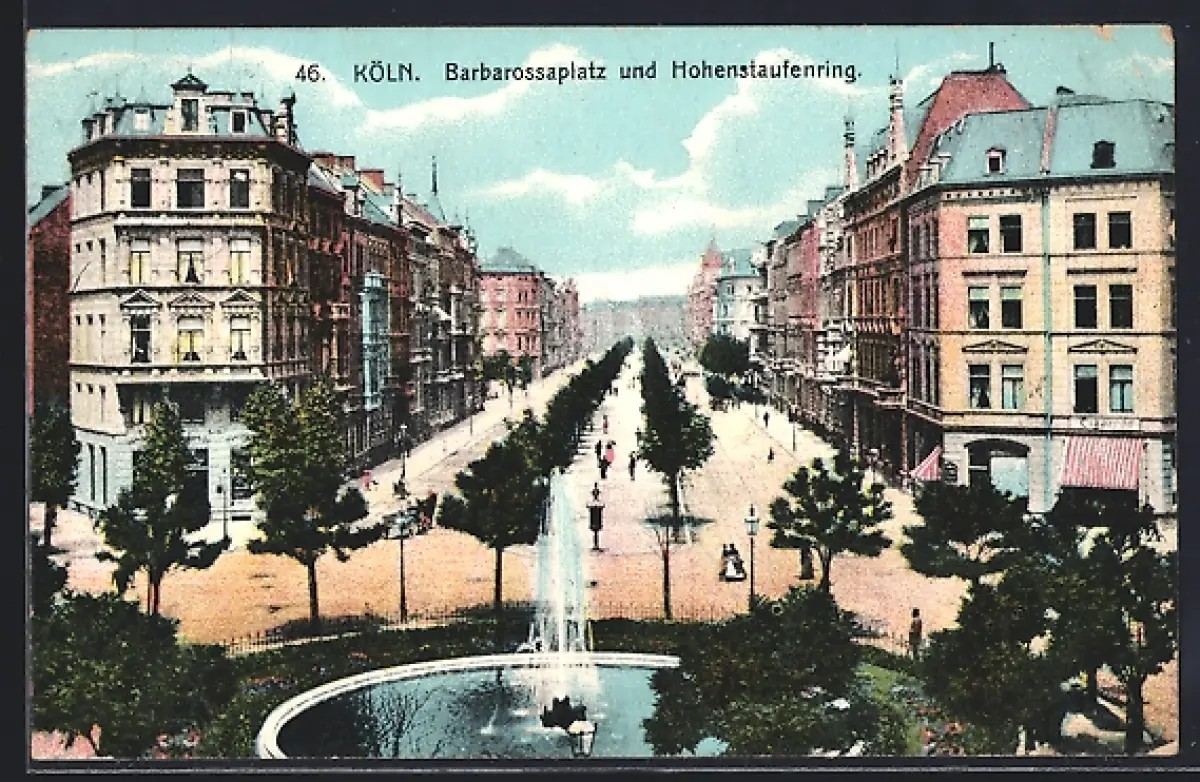 AK Köln-Neustadt, Barbarossaplatz, Hohenstaufenring, Brunnen