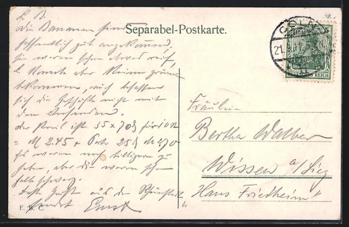 alte Ansichtskarte, gelaufen 1911, Eckknick oben rechts, guter Zustand