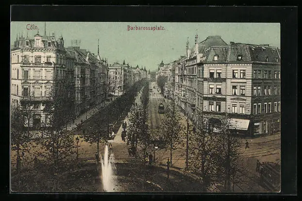 AK Köln-Neustadt, Barbarossaplatz mit Strassenbahn und Springbrunnen