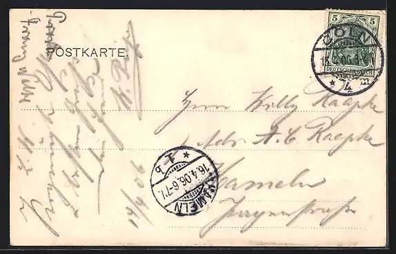 alte Ansichtskarte, gelaufen 1906, Stempelspur, guter Zustand